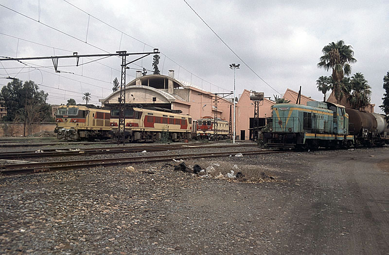 In Marrakech angekommen beziehen wir erst einmal unser Hotelzimmer – vorgebuchtes Ibis direkt neben dem Bahnhof – und ziehen dann direkt los Richtung Bw. In der Einfahrt zum Güterbahnhof fragen wir einen dort wachenden Pförtner nach dem Weg, einer seiner „Gehilfen“ wird sofort eingeteilt, uns dorthin zu führen. Im Bw angekommen übergibt er uns an den ersten vorbeikommenden Bw-Arbeiter, dem wir schon einmal unser Begehr vortragen. Er (!!) erlaubt uns zu fotografieren, überlegt sich dann aber, dass es vielleicht doch besser wäre, vorher noch einmal den Chef zu fragen. Also geht er in den Lokschuppen und kommt mit dem Chef zurück. Hier erleben wir dann einmal eine ganz neue Ausführung des Modells „marokkanischer Chef“: Natürlich ist es erlaubt zu fotografieren, wir können uns frei bewegen und alles aufnehmen, was wir wollen.