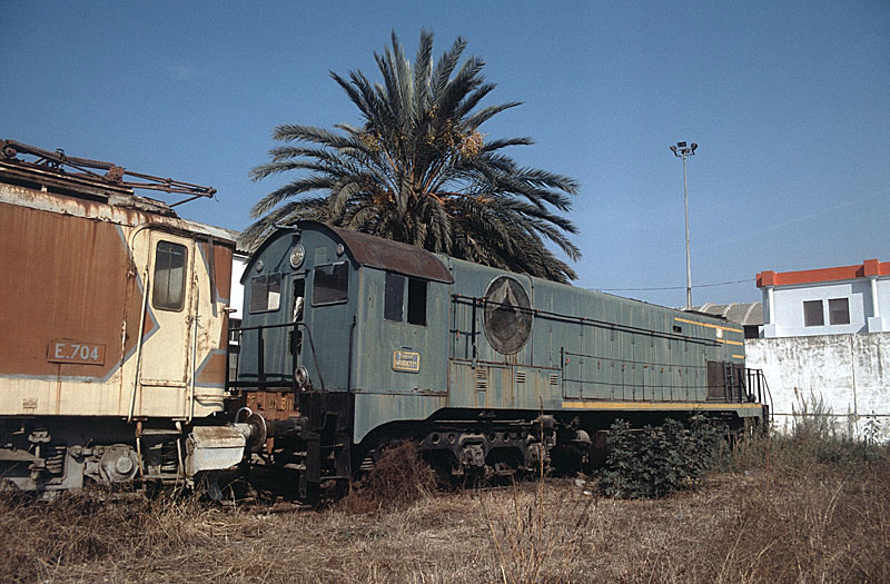 DA-311 als Vertreterin der ältesten Diesellok-Baureihe mit dem markanten gewaltigen Luftfilter-Einlass vor dem Führerhaus. Mit ihnen hielt der Dieselbetrieb auf den Wüstenlinien rund um Oujda Einzug. |